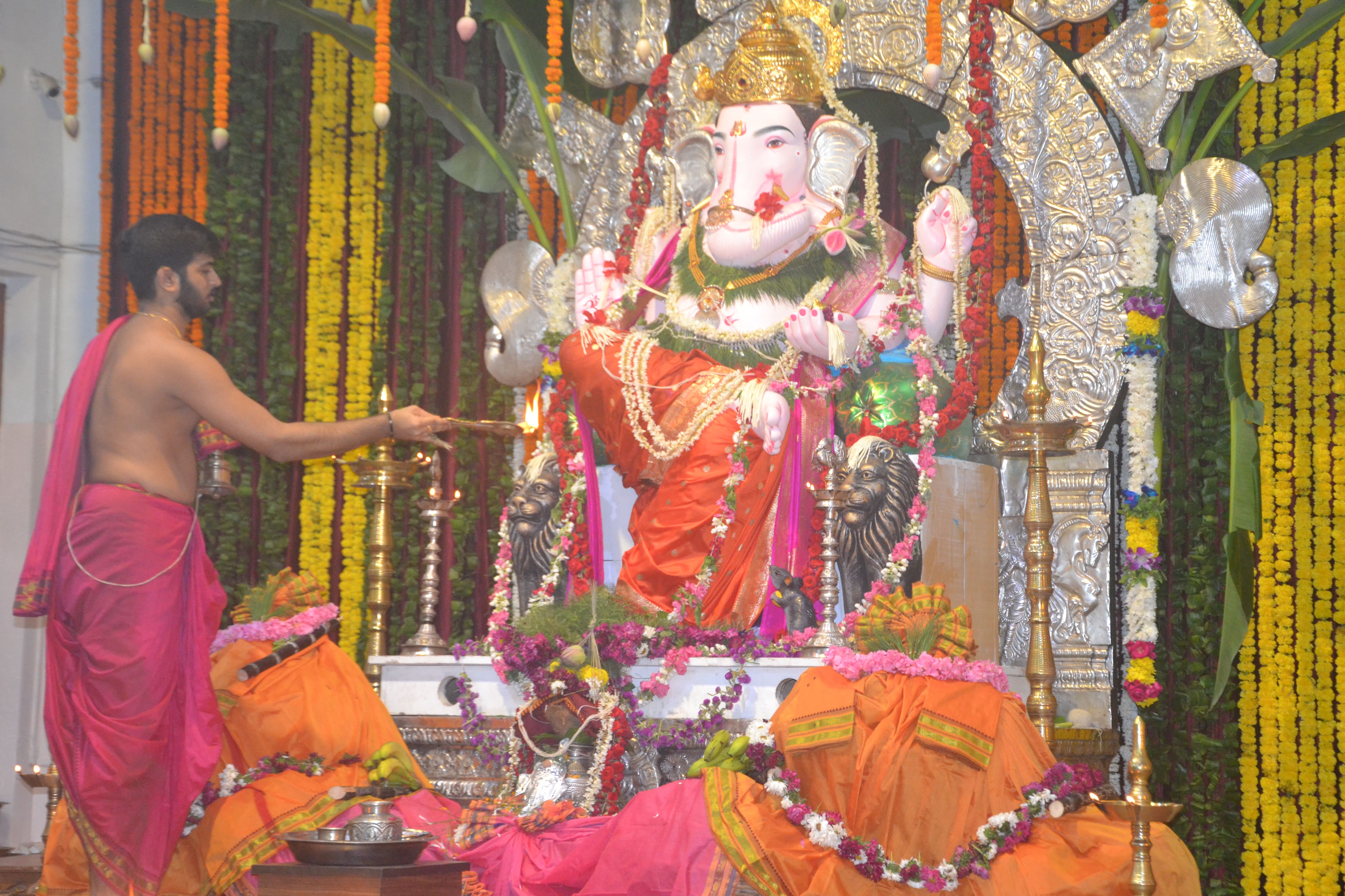 We uphold the tradition initiated by Shri Lokmanya Tilak in 1893, transforming the private Ganesh festival into a grand public event that promotes culture and unity among the masses. Thousands of devotees participate in the daily poojas, followed by traditional South Indian community lunches and dinners (Prasad).